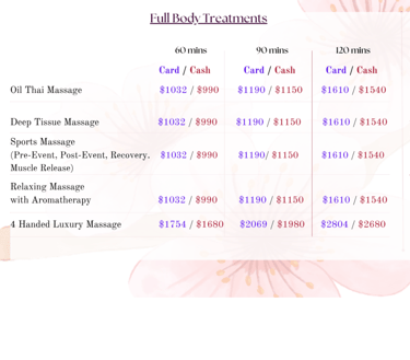 As we receive many requests, sessions begin promptly at the scheduled time. If for any reason outside of the therapist’s control you are unable to receive or complete your massage, the reserved session will still be charged, as our therapists cannot extend their stay beyond the booked time.